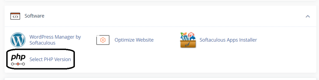 - Locate the “Select PHP Version” Option: Once you are logged in to cPanel, you can usually find the “Select PHP Version” option under the “Software” or “Software/Services” section. It might also be labeled as “MultiPHP Manager” or similar, depending on your cPanel theme and version.